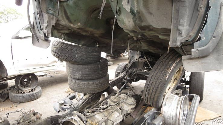 Фотографии были сделаны на одной из свалок металлолома в США. Один из клиентов увидел 1998 автомобиль Acura SLX и высказал готовность купить его двигатель - Isuzu V6. Пока покупатель не передумал, сотрудники свалки краном оторвали кузов, подперли его старыми колесами и вытащили агрегат. Отчаянные.