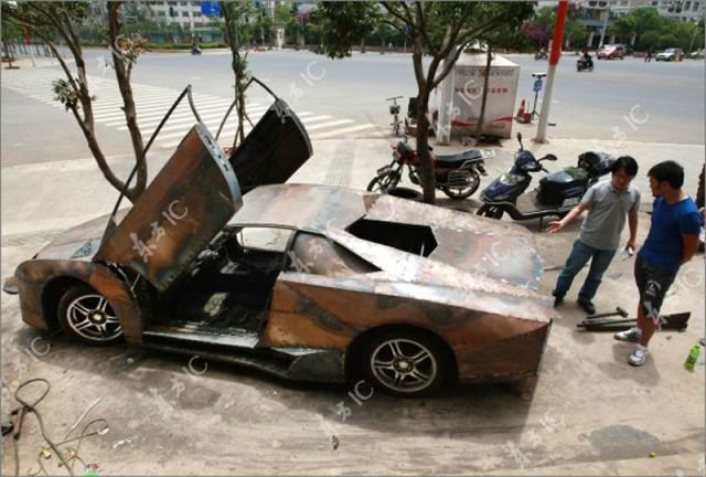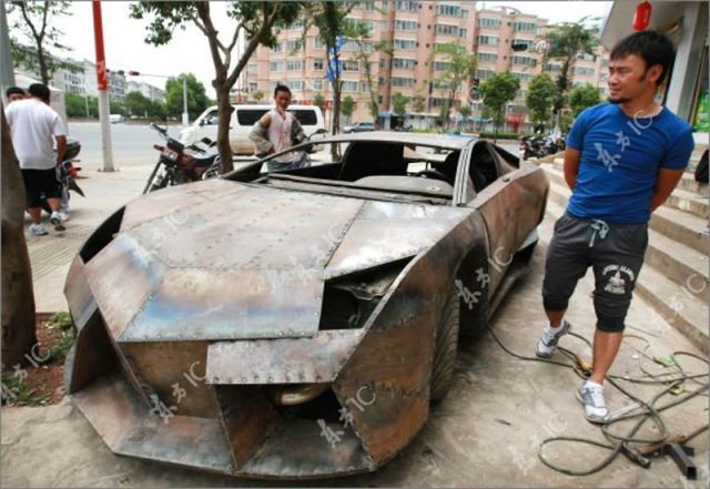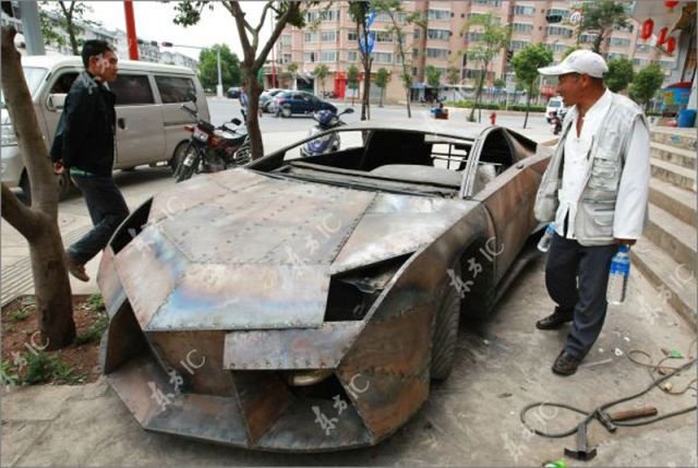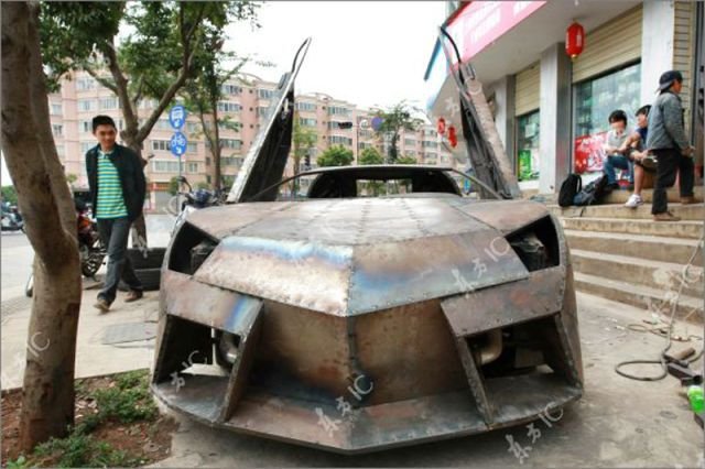Цена на оригинальную машину Reventon порядка 2,3 миллиона долларов. Китайский умелец взял обычный Ниссан А31 95-го года выпуска и сделал из нее машину мечты. На фото прототип, конечно сыроват, но думаю еще немного краски и отличить подделку будет сложновато.