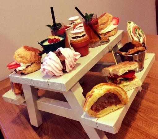 The Garden Kitchen, Клитеро, Великобритания Настоящий пикник на скамейке