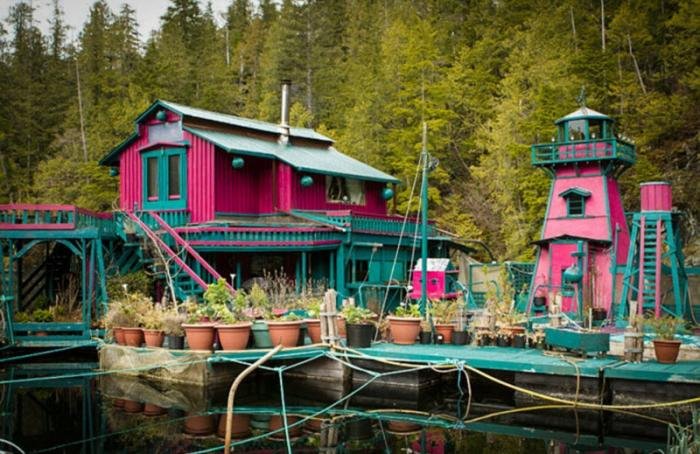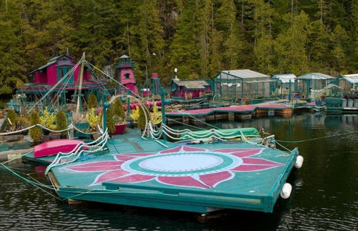 Канадские супруги бросили вызов шумной городской жизни и стали жить в необычном доме, который они назвали «Бухта свободы». Уэйн Адамс и Кэтрин Кинг живут на скрепленных между собой 12-ти плавающих понтонах. Их дом, построенный в 1992 году у побережья Тофино, состоит из деревянных конструкций, теплиц и жилых пространств, связанных деревянными переходами. Благодаря любви Кэтрин к садоводству и увлечению Адамса резьбой по дереву пара создала совершенно фантастический плавающий дом.