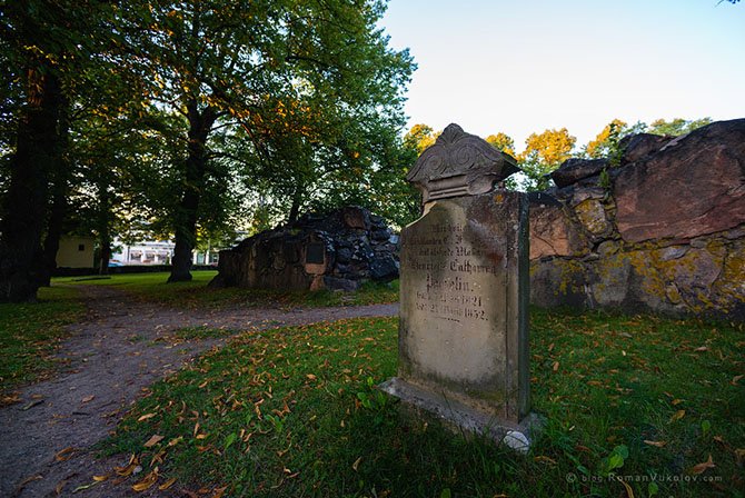 Почти в самом центре наткнулся на руины средневековой церкви, сгоревшей в 1640 году. В общем, от неё остался только каменный фундамент и пара могил — ничего особо интересного.