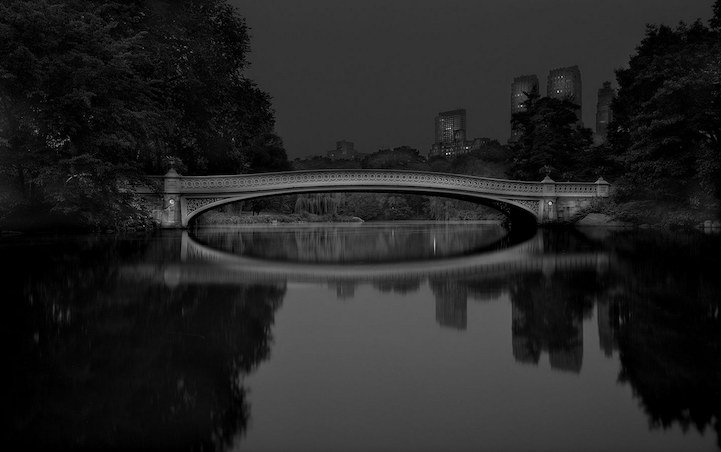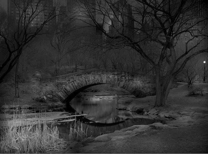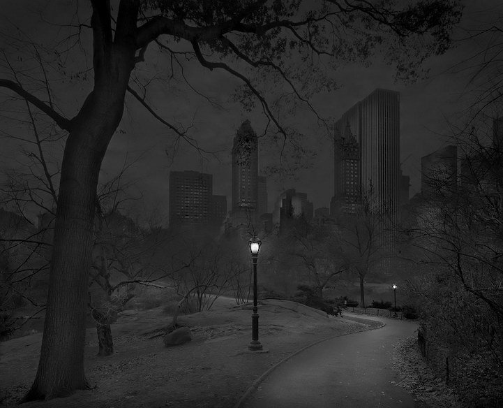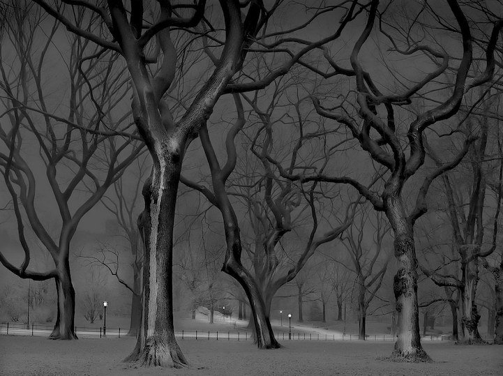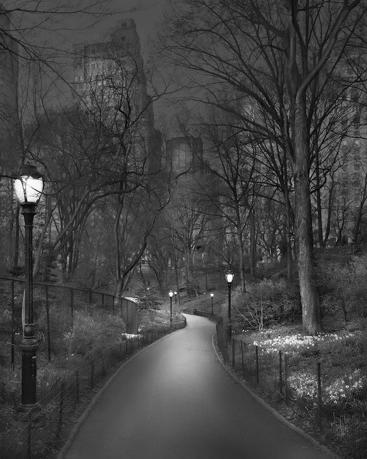 Ночью Центральный Парк, такой оживленный в дневное время суток, становится загадочным и тихим. Огромные тени, гигантские деревья и песни цикад. Фотограф Майкл Массаиа (Michael Massaia) с помощью своих фотографий показал это ночное спокойствие парка.