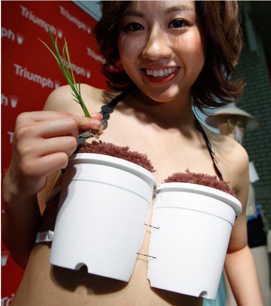 Компания по производству нижнего белья «Triumph» выпустила “зеленый” бюстгальтер “Вырасти рис сам”. Во время презентации представители компании заявили, что этот комплект-трансформер позволит своим владелицам возделывать рис всегда и везде. Создатели этого необычного нижнего белья заявили, что ставили себе целью ознакомить жительниц мегаполисов с сельским хозяйством и привить к нему уважение.