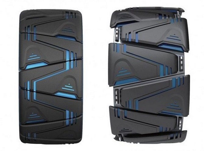 Если же это произойдет колесо сможет автоматически заменить поврежденный сегмент или сегменты за счет «автоподкачки». Напоследок стоит отметить, что весить Kuhmo’s Maxplo будут около 12 килограмм. Габариты колеса в штатном режиме (без изменений) составят 700 х 700 х 250 мм. В каждом колесе будет работать небольшой электродвигатель с парой аккумуляторов. Создаваться колеса будут из передовых композитных материалов.