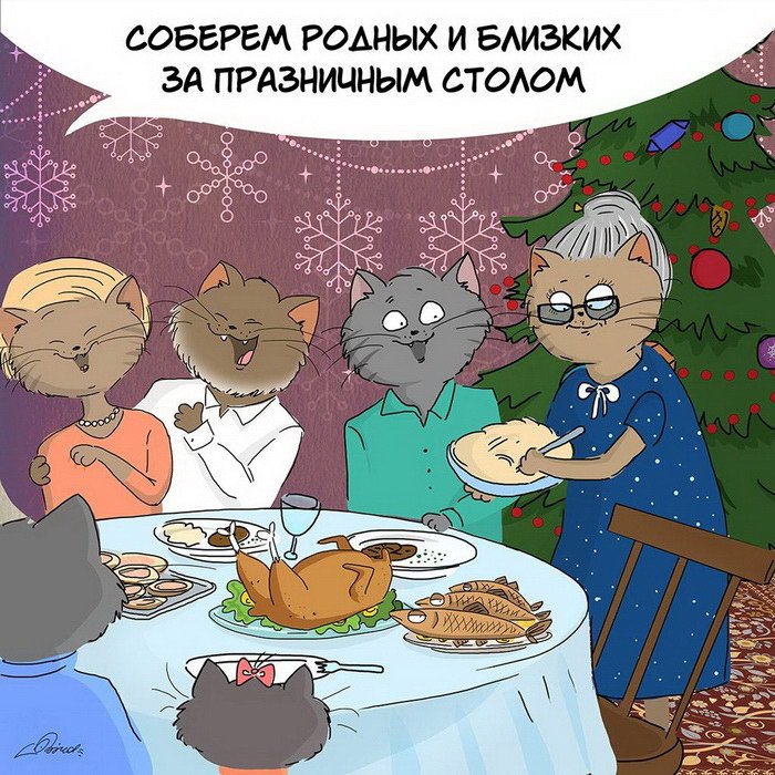 Московский художник и иллюстратор Bird Born показал на примере котиков, как нужно готовиться к праздникам. Предлагаем взять на вооружение некоторые пункты: к примеру, действительно стоит простить все обиды и вернуть долги, чтобы ворваться в 2016 год без плохих мыслей.