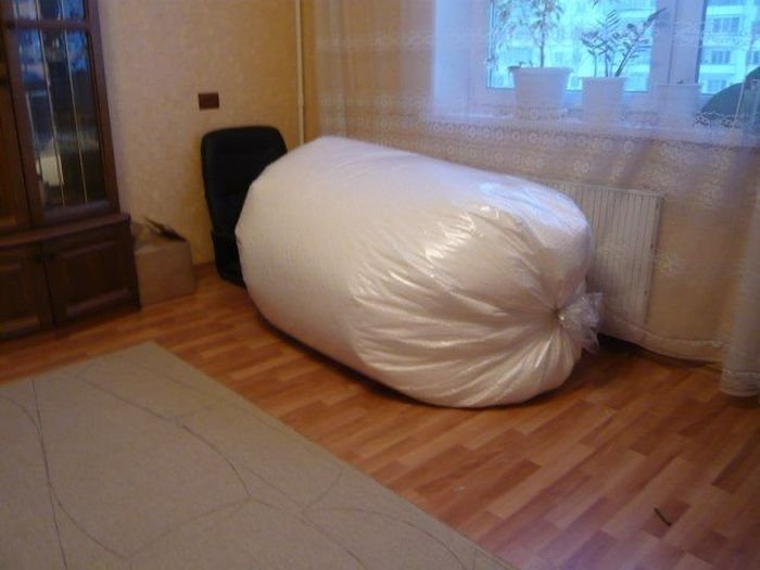 Уже сшит наружный чехол. Готово. Самое сложное это было собрать все шарики так как статическое напряжение разбрасывает их везде… собирал пылесосом.