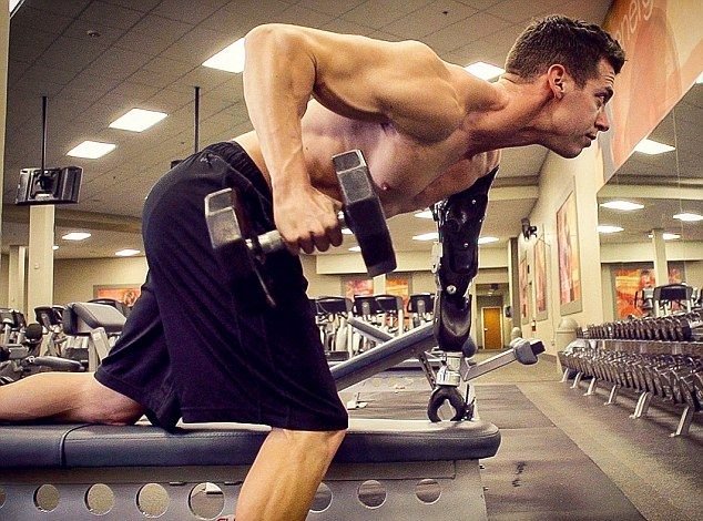 Однорукий бодибилдер занимается наравне со всеми благодаря искусственной руке