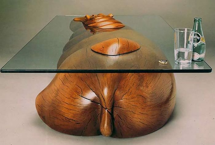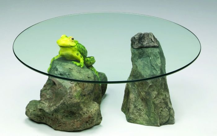 Дерек Пирс (Derek Pearce) создает уникальные кофейные и журнальные столики, которые станут прекрасным украшением любой гостиной или других помещений. Стеклянная поверхность стола выступает в роли водной глади, из которой выглядывают различные животные. Особенность этих "умных столов" заключается в том, что они показывают, как животные прячутся под водой. Выглядит подобное решение очень креативно и оригинально.
