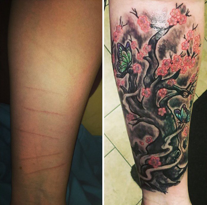 В этой коллекции собраны фотографии с кавер-ап татуировками, с помощью которых тату-художники умело скрыли ожоги или шрамы, полученные при самых разных обстоятельствах, будь то хирургическая операция, укус собаки, попытка самоубийства или травма, полученная в результате жестокого обращения партнёра. Поэтому в следующий раз, увидев человека с татуировкой, это тоже нужно иметь в виду, прежде чем кидать осуждающие взгляды.