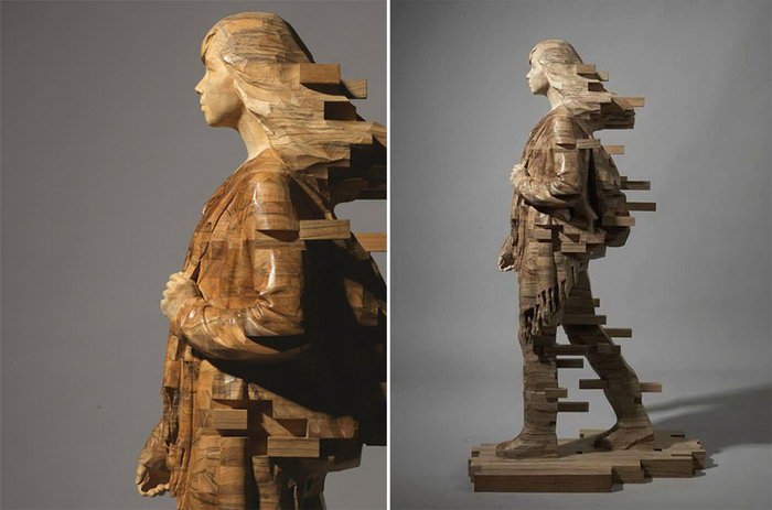 Пикселизованные деревянные скульптуры Hsu Tung Han