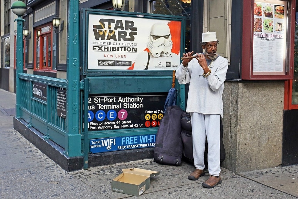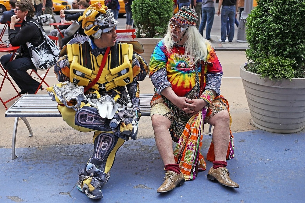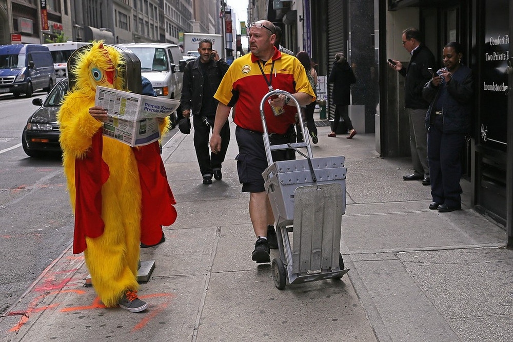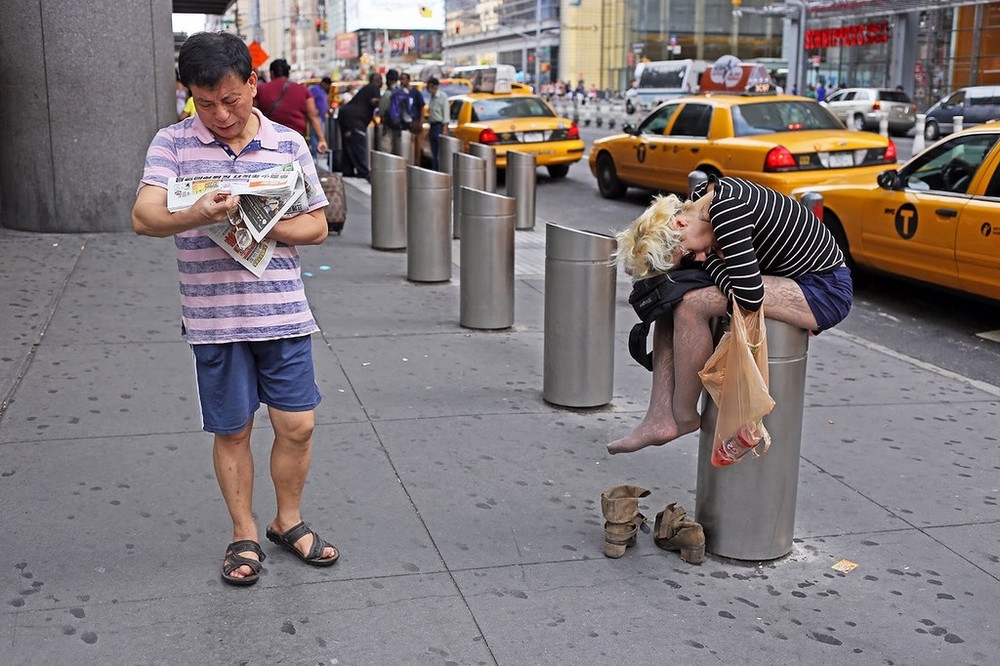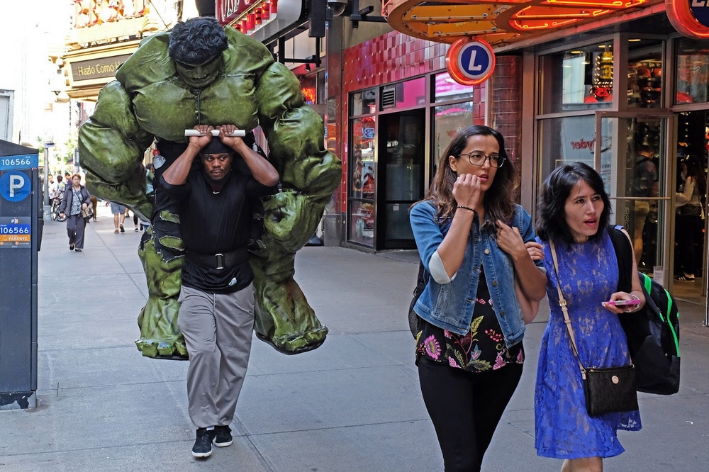 «Это Нью-Йорк, здесь нет дефицита в странном, необычном, причудливом и юмористическом. Такова природа здешней культуры. В этом городе индивидуальное самовыражение не только принято и приветствуется, но также вызывает восхищение и поощряется. Так что в Нью-Йорке никогда нет проблем с темой съёмки. Всё что нужно – время и километры, чтобы ходить и искать», – рассказывает уличный фотограф Рич Дохерти (Rich Docherty) из крупнейшего города США.