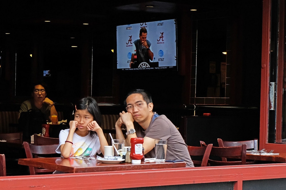 «Чаще всего я снимаю "от бедра" (на самом деле от грудины), потому что во время моих скромных начинаний на улице я понял, что небольшая скрытность – лучший способ "словить момент". Честно говоря, я часто возвращаюсь домой с пустыми руками, без единого снимка. Я не трачу много времени, работая над сценой, в основном просто ловлю кадр и двигаюсь дальше. Снимаю на зеркалку Canon 6D с 35-миллиметровым объективом. Да, техника тяжеловатая и слишком бросающаяся в глаза для уличной работы, но потом я вспоминаю о замечательных изображениях, которые удавалось создавать Вивиан Майер с громоздкой камерой Rolleiflex и говорю себе на что я жалуюсь?!»