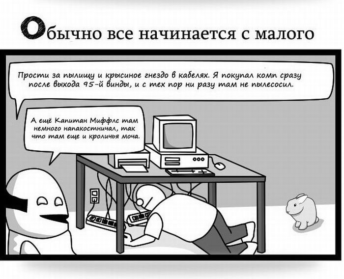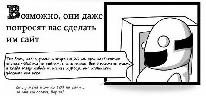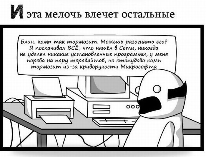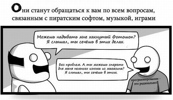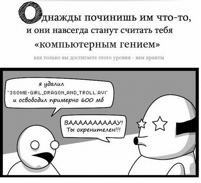 Не рассказывайте, что вы шарите в компах 19/08/2011 12:52 Очень правдиво! Слышу постоянно "Обрежь мне эту мелодию, только правильно, ты же компьютерщик!""Почини мне колонки, ты же компьютерщик!", "Создай мне сайт, ты же вроде делал, да?" Юмор 10 Grey 1 8 224