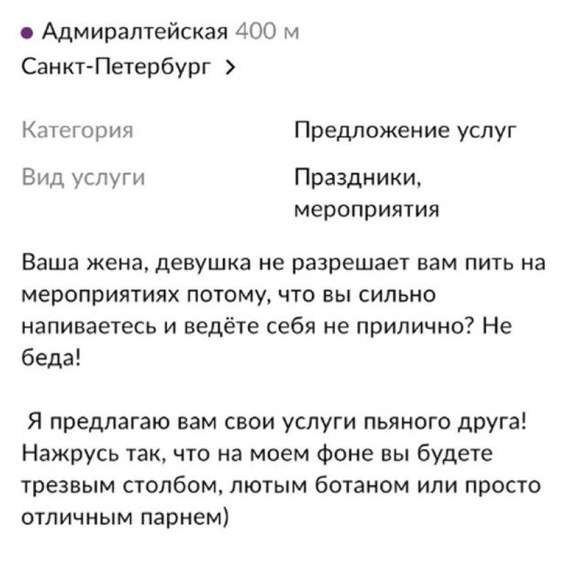 Профессиональные услуги пьяного друга.