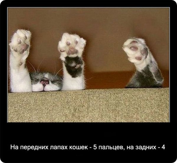 у меня было три кота)...и я не знал что на задних лапах у них всего 4 пальца