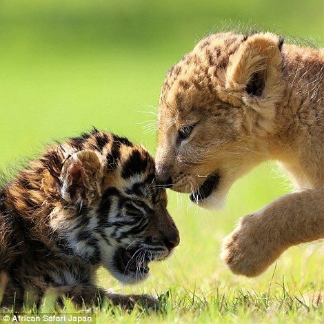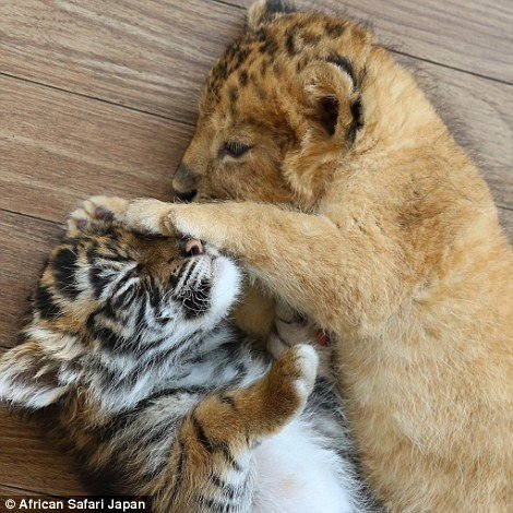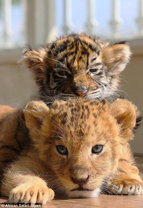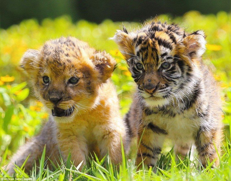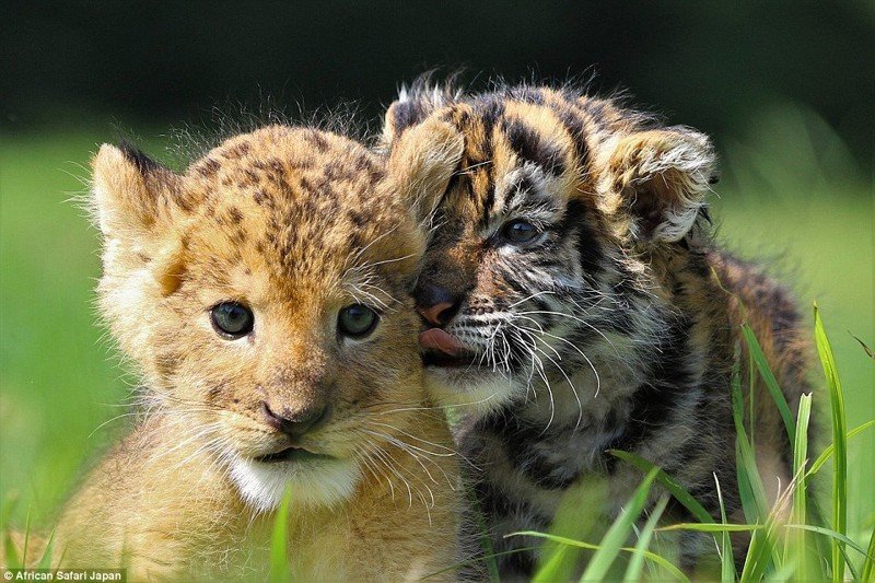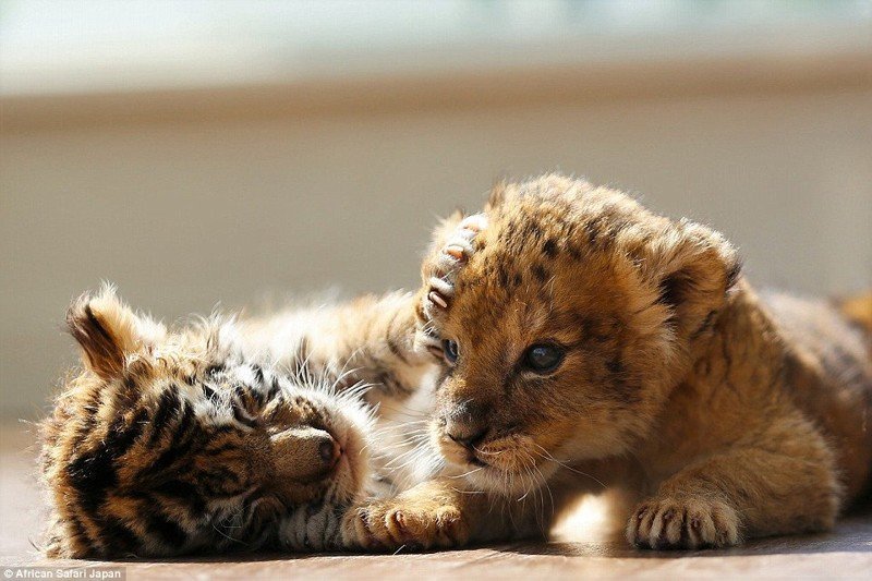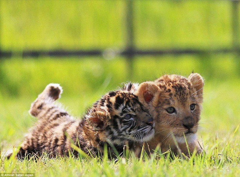 В сафари-парке African Safari в префектуре Оита, Япония, в начале 2016 года родились два очаровательных детёныша — тигрёнок и львёнок. И, хотя, между кошками разных видов в природе обычно такое не наблюдается, эти два закадычных друга являются великолепным примером дружбы между животными!