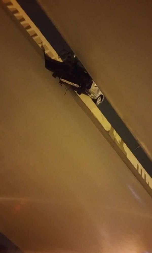 В Китае автомобилист-лихач попал в ДТП и повис на мосту
