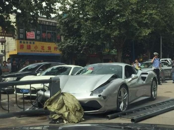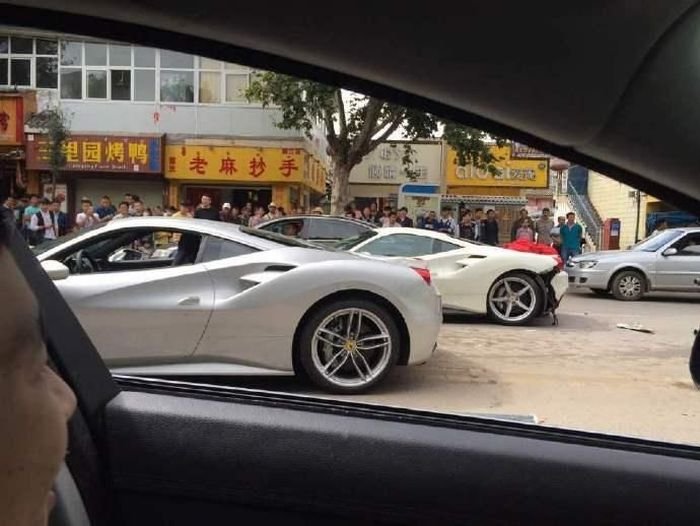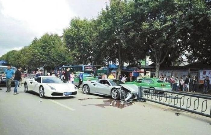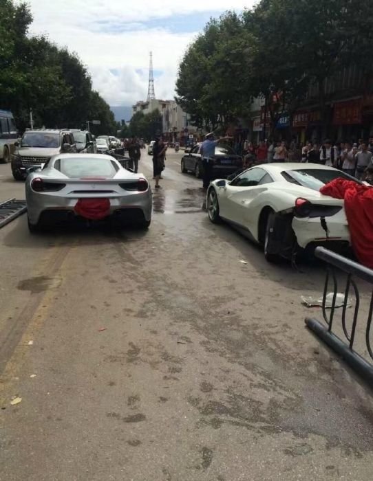 В китайском городе Лицзян, провинция Юньнань, владельцы суперкаров Ferrari решили проверить, чей автомобиль быстрее и устроили заезд, во время которого на дорогу неожиданно выбежал щенок. Автомобилисты попытались избежать столкновения с животным, и попали в аварию. Одна из машин пострадала от удара в отбойник, другая серьезно повредила заднюю часть. По оценкам страховщиков, ремонт машин обойдется примерно в 150 000 долларов.