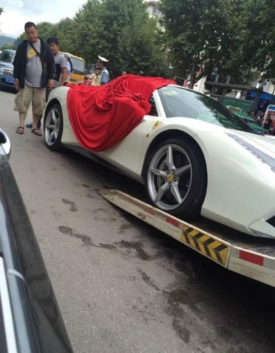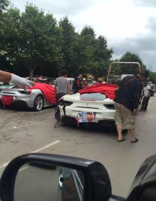 Пытаясь спасти щенка, китайцы разбили два суперкара Ferrari