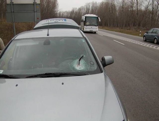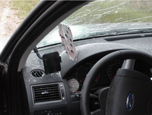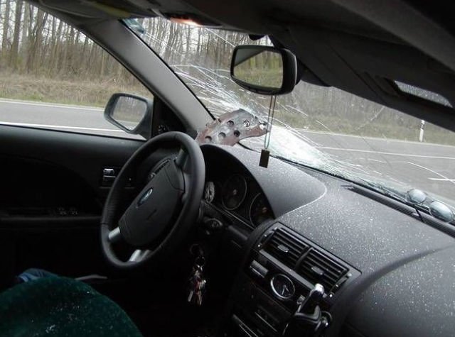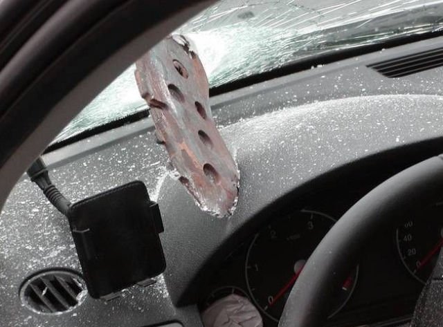 Водитель получил неожиданный сюрприз на дороге 25/12/2016 22:26 Жёстокий подарок от грузовика, тормозная колодка пробила лобовое стекло легкового автомобиля и застряла. Авто 0 Котейка 0 2 108