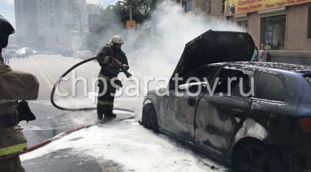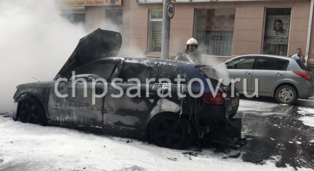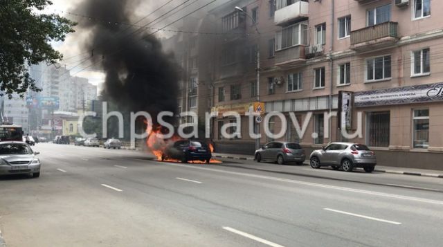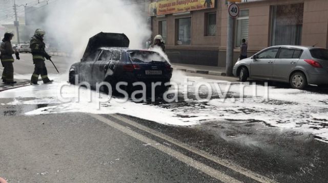 Audi полностью сгорел после наезда на люк (7 фото)