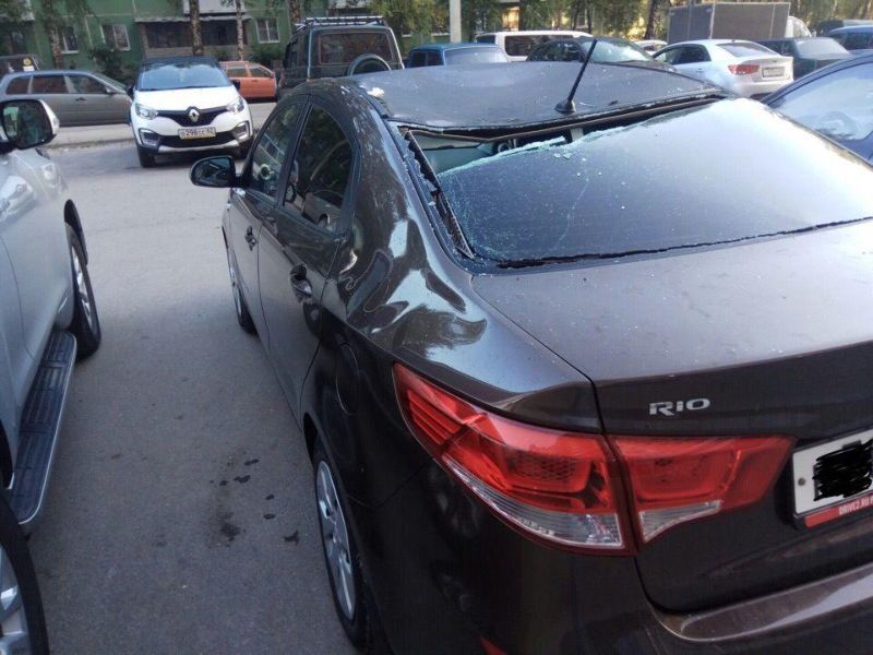 Брошенный с балкона пакет с водой может изрядно повредить авто