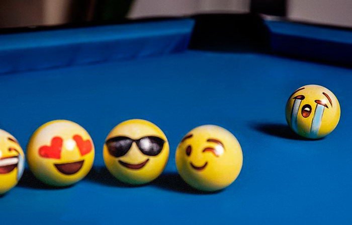 Французский дизайнер Жан-Батист ле Дивелек (Jean-Baptiste Le Divelec) разработал комплект шаров для бильярда с популярными в интернете эмодзи-рожицами. Теперь можно не только поиграть в бильярд, но и сделать ряд забавных фотографий.