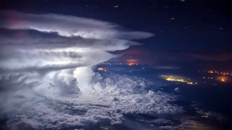 Пилот «"Эквадорских авиалиний» Сантьяго Борха сумел сфотографировать огромный грозовой шторм, бушевавший над Тихим океаном, к югу от Панамы. Глядя с земли, невозможно себе представить всю красоту и мощь этой стихии!