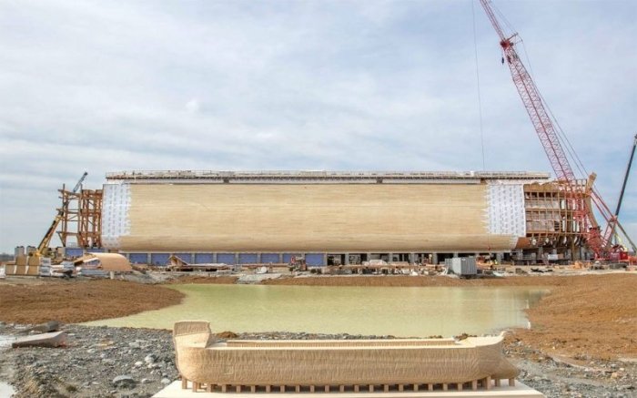 В американском городе Уильямстаун, штат Кентукки, открыли парк развлечений на библейскую тематику, главной изюминкой которого стала копия Ноевого ковчега в натуральную величину. Размеры строения составляют 155 метров в длину, 26 метров в ширину и 15,5 метров в высоту.
