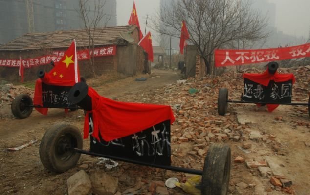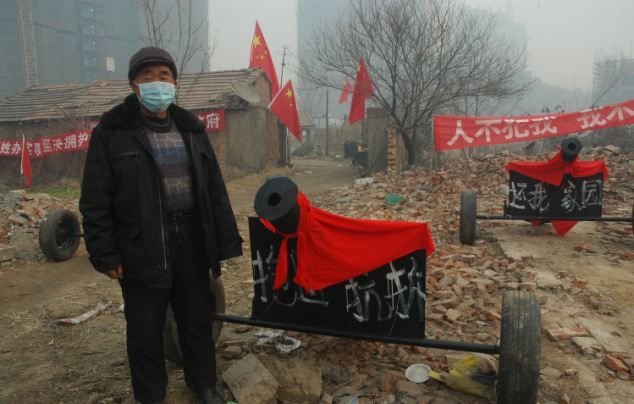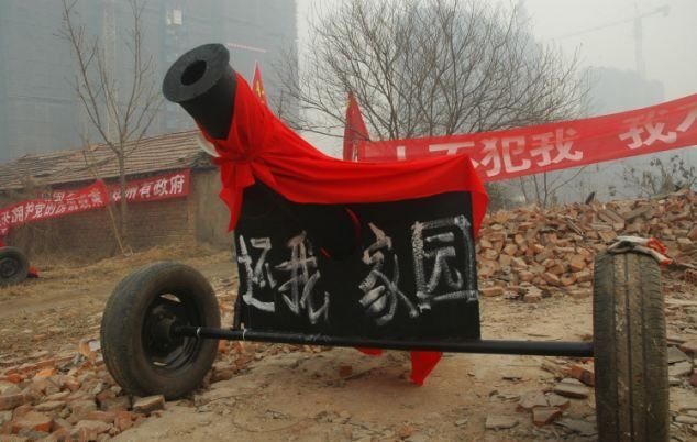 Власти вознамерились снести дом китайца Чжоу Цзяньбанга без его согласия. Как это часто бывает, компенсация не удовлетворила пенсионера, а власти не готовы платить больше, потому вопрос взялись решать кардинально. Старичок в знак протеста выставил шесть самодельных пушек. Правда, они не стреляют - так, дурилка. Тем не менее, выглядит эпично.