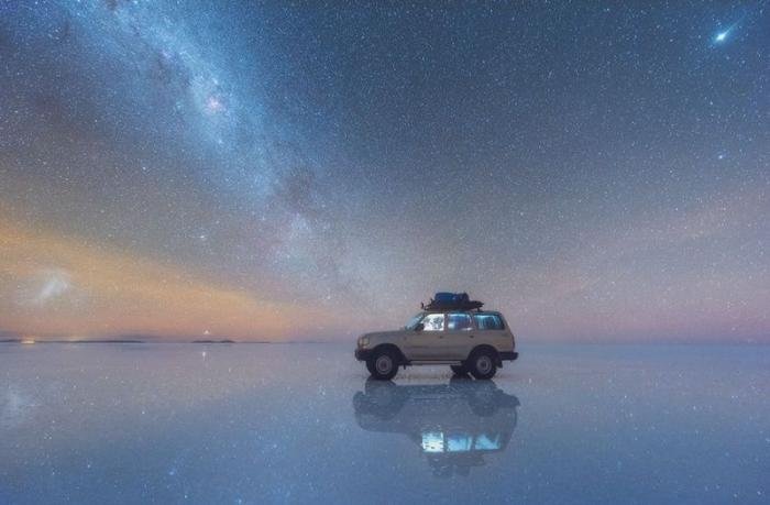 Отражение Млечного Пути в боливийских солончаках 01/08/2016 23:28 Российский фотограф Даниил Коржонов отправился на солончак Уюни в Боливии и сделал там ошеломительные фотографии Млечного Пути, отраженного в соляном зеркале. Смотрится действительно фантастически. Фотографии и картинки 0 Котейка 0 1 280