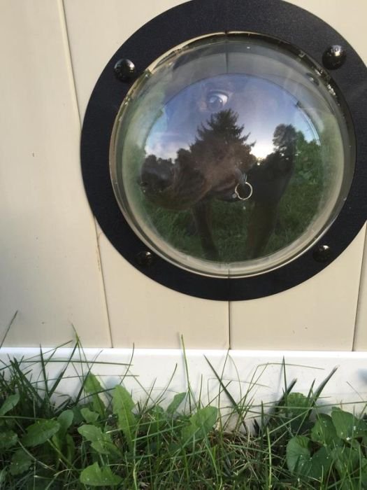 Иллюминаторы для собак 16/08/2016 14:49 Вот такие вот забавные иллюминаторы появились в заборе одного парня, у которого живет несколько собак. Благодаря этим креативным иллюминаторам любопытные животные могут наблюдать за тем, что происходит за периметром двора. Фотографии и картинки 0 Котейка 0 1 243