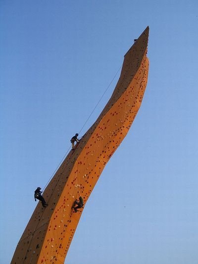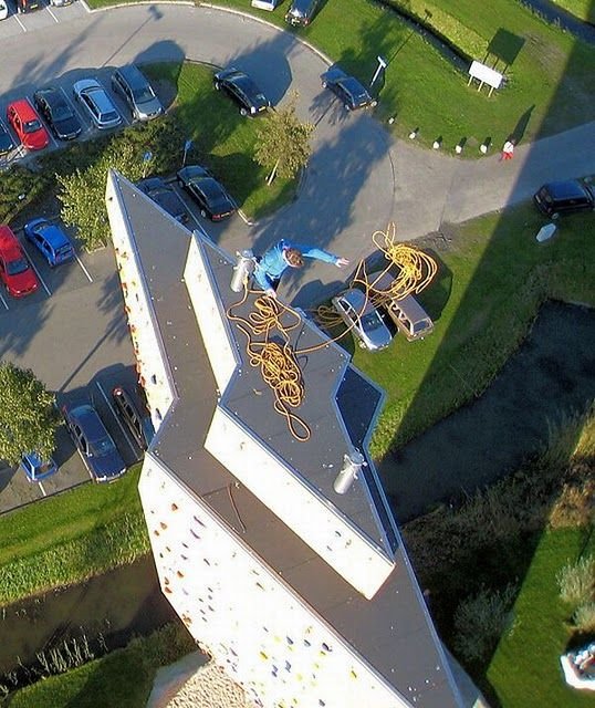 В Голландии все хорошо, кроме того, что у них нет высоких гор и бедным скалолазам негде тренироваться. Поэтому власти решили построить самый высокий скалодром. И назвали его Экскалибур. Высота строения - 37 метров (примерно 12 этажей).