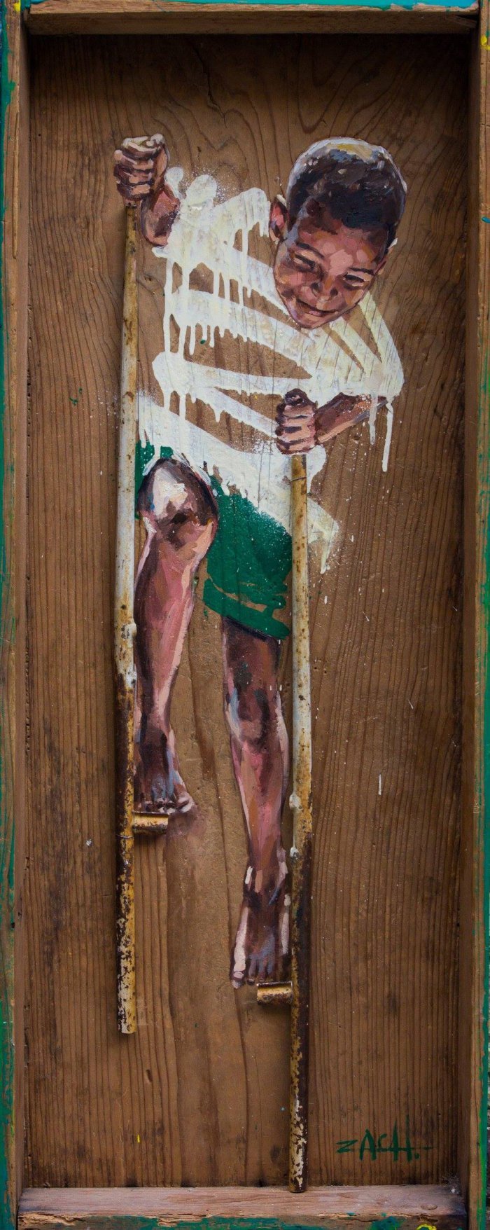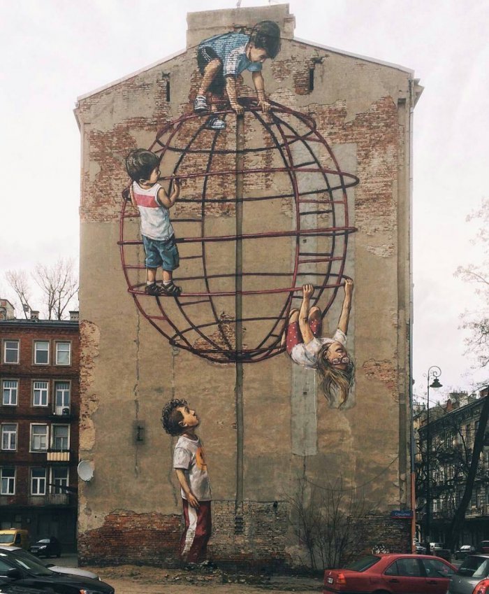 В принципе, общая концепция осталась неизменной. Эрнест Захаревич (Ernest Zacharevic) старается максимально взаимодействовать с городской архитектурой и элементами улиц мегаполисов. Сам процесс внедрения может быть, как небольшим, так и весьма габаритным. Если помните, то известность художник приобрел благодаря своим проектам в Юго-Восточной Азии. Последние арт-проекты были созданы в основном в Европе: Польша, Исландия, Норвегия и другие страны-соседи.