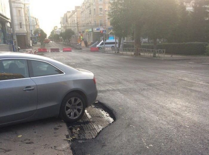 Необычный ремонт дорог 25/08/2016 23:06 В Рязани из-за припаркованного автомобиля не отремонтировали часть дорожного полотна. Дорожники просто обошли стороной Audi с московскими номерами, оставив послание владельцу на тротуаре. Судя по всему, эвакуаторы до Рязани пока еще не добрались. Фотографии и картинки 0 Котейка 0 2 282