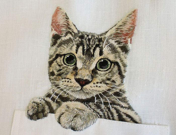 Карманные котики: чудесные вышивки от японского дизайнера