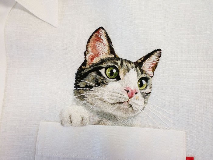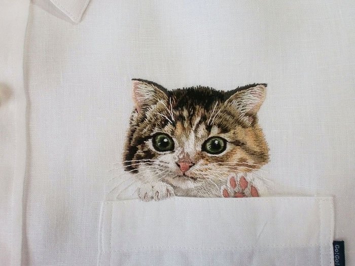 История карманных котиков – это история о том, как обычная просьба сына дала толчок для целого бизнеса. Все началось с того, что маленький сын Хироко Кубота попросил маму сделать ему рубашку или футболку с любимым котом. Хирото аккуратно вышила котика, будто бы выглядывающего из кармана. Разместив эту фотографию в сети, котик стал неимоверно популярным, и заказы на подобные вышивки просто рекой полились к Хироко.