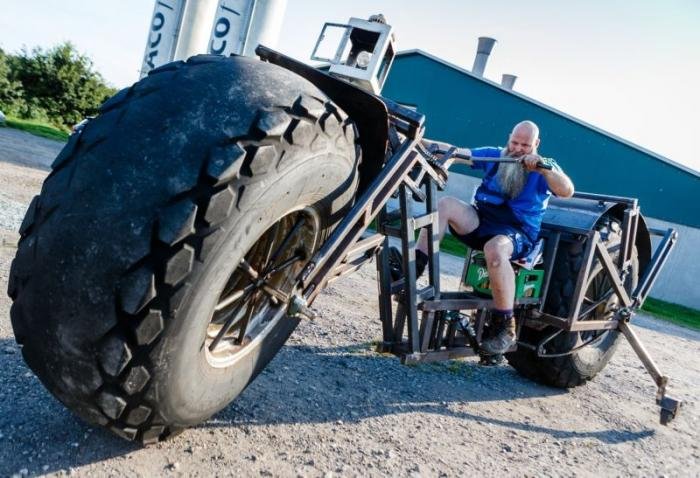 Его транспортное средство весит чуть больше тонны, а диаметр колес составляет 1,53 м, но Франк утверждает, что кататься на его изобретении на удивление сравнительно легко.