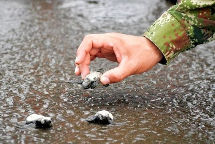 Колумбийские моряки спасают детенышей черепах 10/10/2016 20:29 Каждый год моряки военно-морского флота Колумбии спасают тысячи детенышей черепах, помогая им добраться до океана. Для военнослужащих это уже стало их негласной обязанностью. Фотографии и картинки 0 Котейка 0 1 707