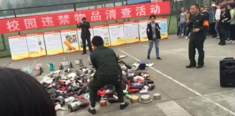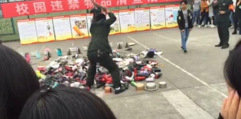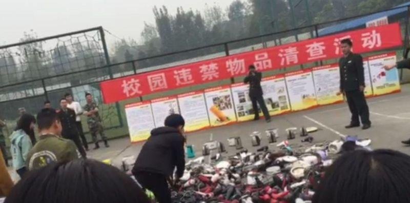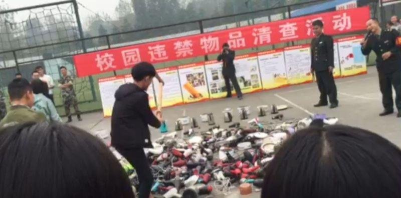 Администрация китайской школы порубила топором конфискованные у студентов электроприборы