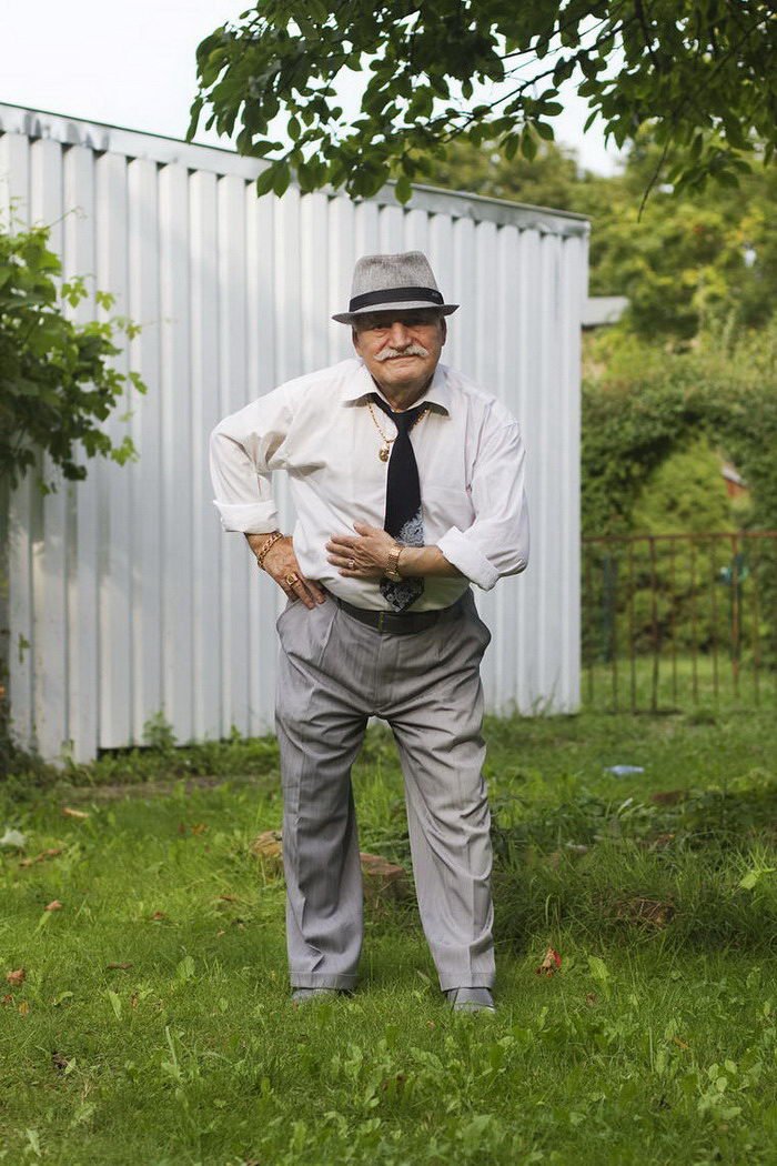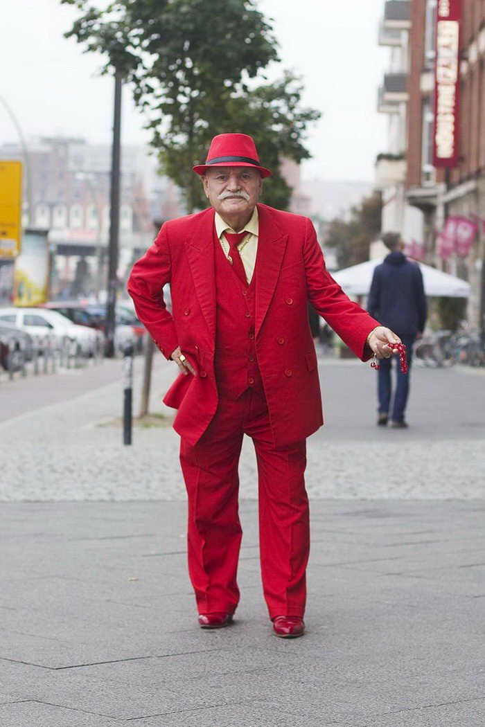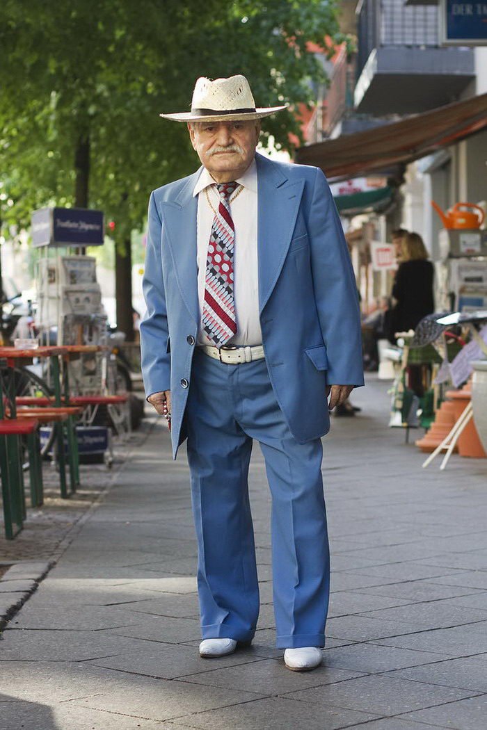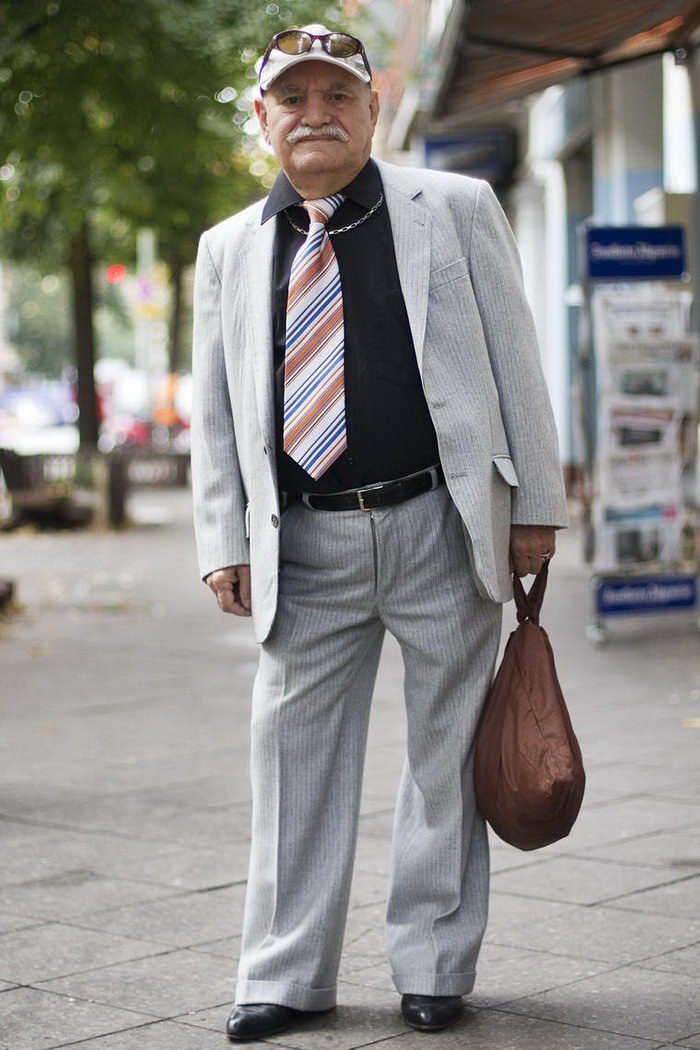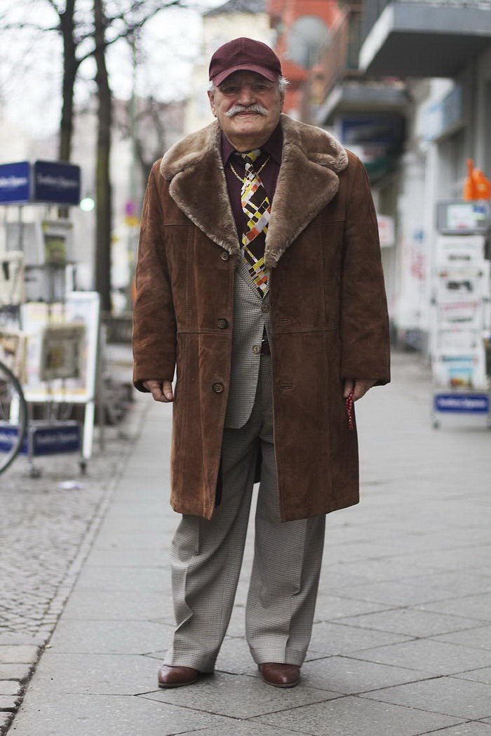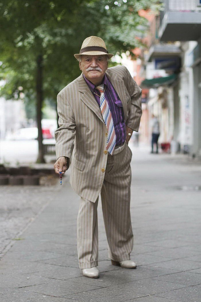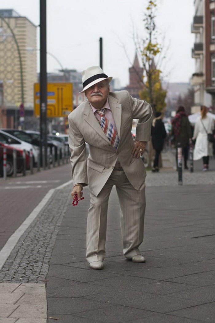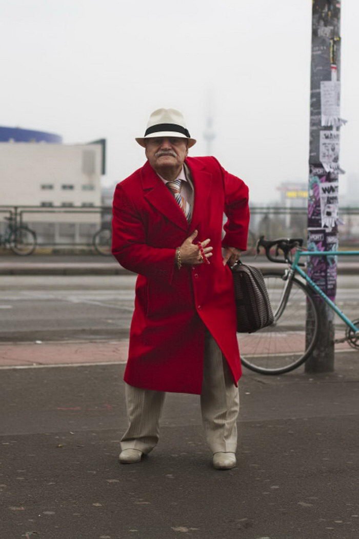 Фотограф делает снимки пожилого жителя Берлина, которые умеет стильно одеваться.