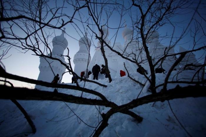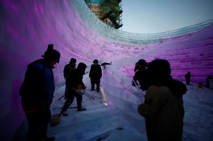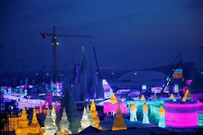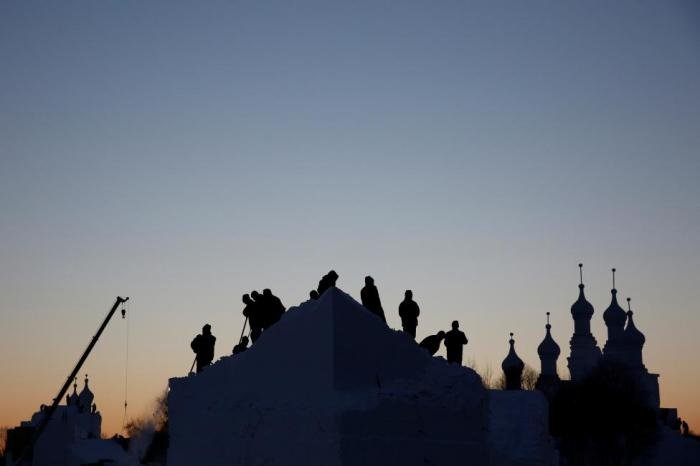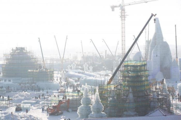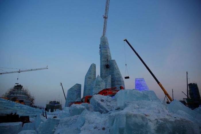 В городе Харбин в китайской провинции Хэйлунцзян в самом разгаре подготовка к ежегодному Харбинскому международному фестивалю снежных и ледяных скульптур. На берегу реки Сунгари буквально на глазах вырастает город из снега и льда, который совсем скоро откроет свои двери туристам.