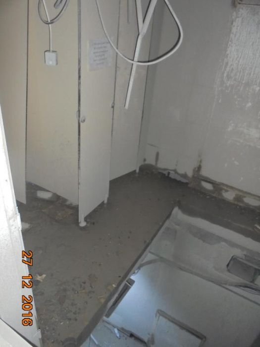Выяснилось, что на месте туалета должен был находиться лифт... После этого лифт, конечно же, пришлось ставить.