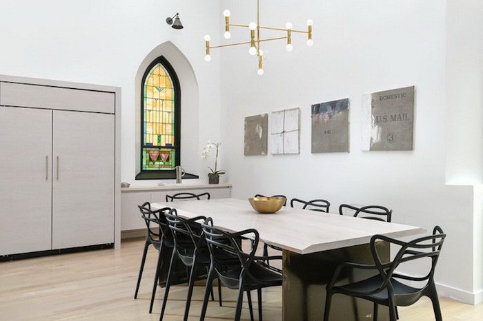 Компании Linc Thelen Design и Scrafano Architects разработали дизайн апартаментов в здании, где раньше располагалась церковь. В дизайн дома отлично вписались витражные окна и высокие потолки. Получилось большое и просторное жилище для большой семьи.