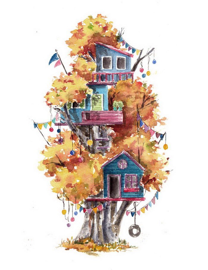 Мереам (Meream) живет в Себу, Филиппины, и интересуется творчеством и кошками. Девушка создала 12 иллюстраций домиков на деревьях, каждый из которых является мечтой любого ребенка. Мереам уверена, что не стоит взрослеть: мечтать полезно и во взрослом возрасте!