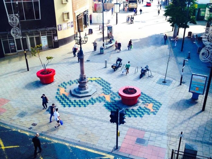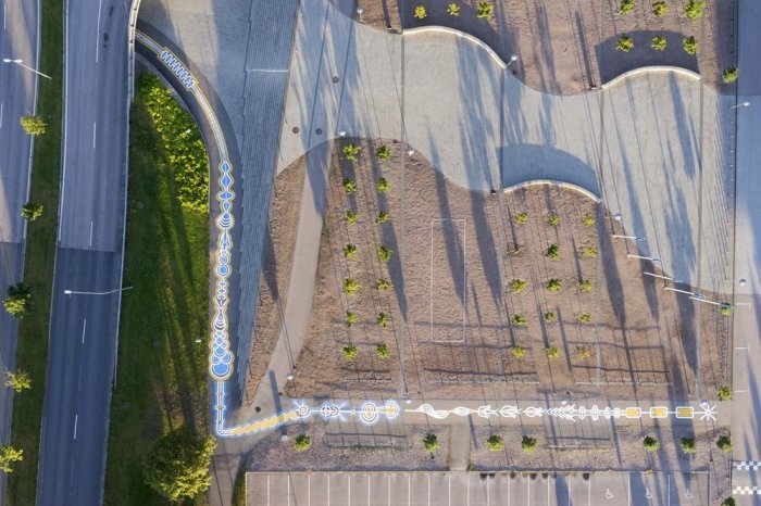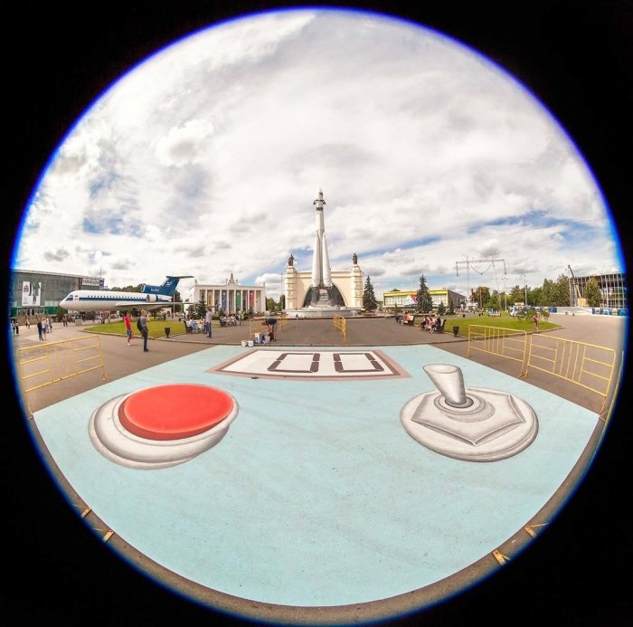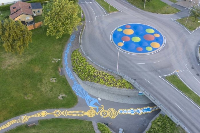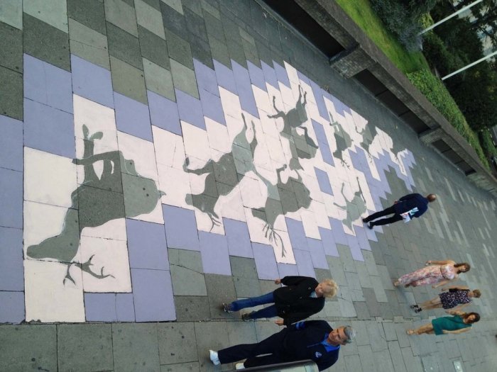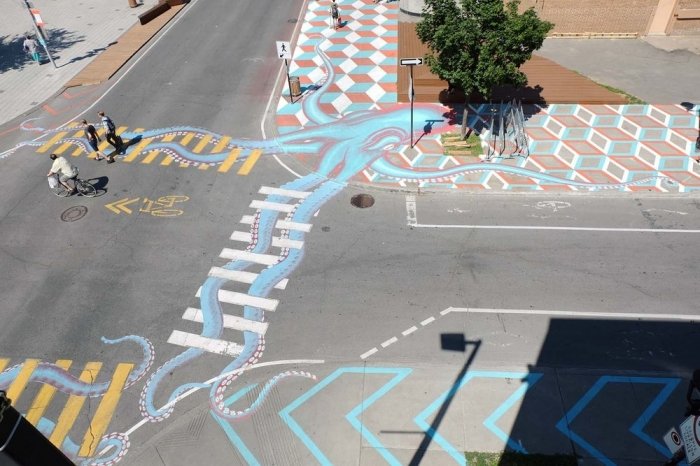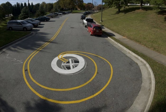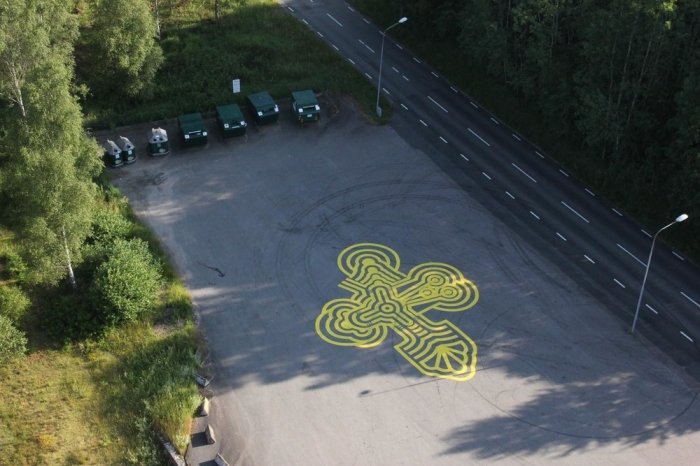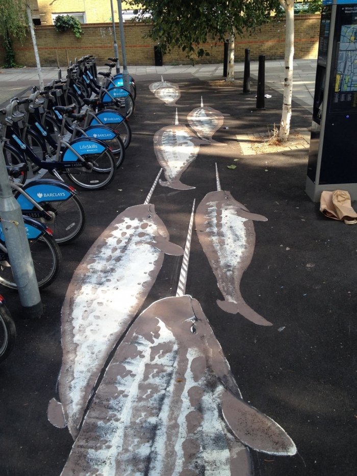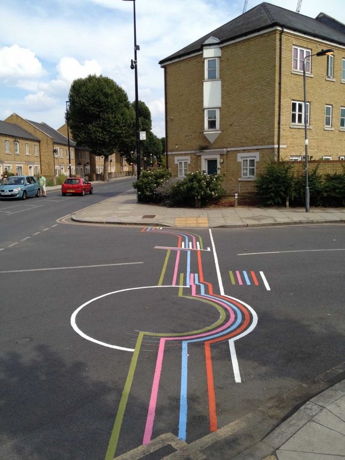 Канадский уличный художник, известный под псевдонимом Roadsworth, оригинально и ловко использует асфальт, как канву для своих произведений уличного искусства. Нередко хорошо различимые только с небольшой высоты или определённого ракурса, его работы затрагивают разные темы, от кризиса с беженцами и современного потребительства до красоты природы.