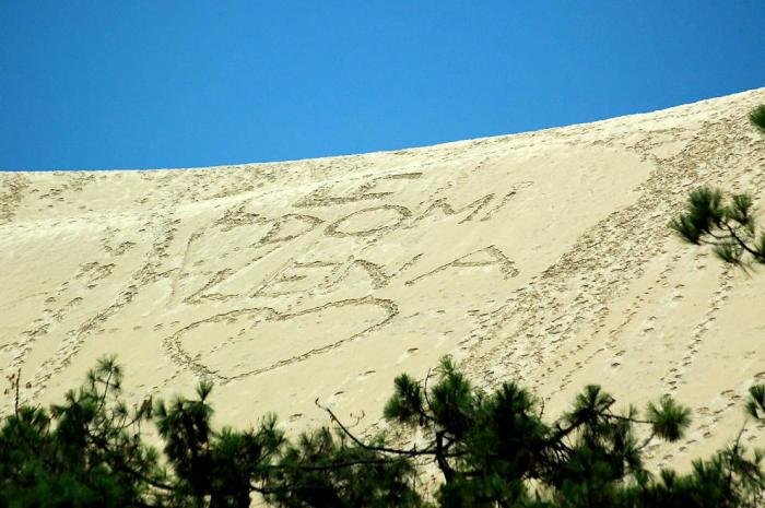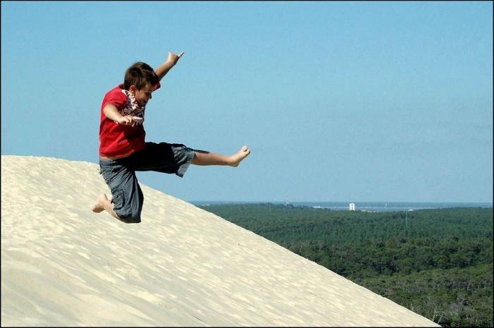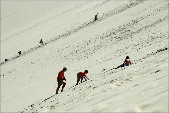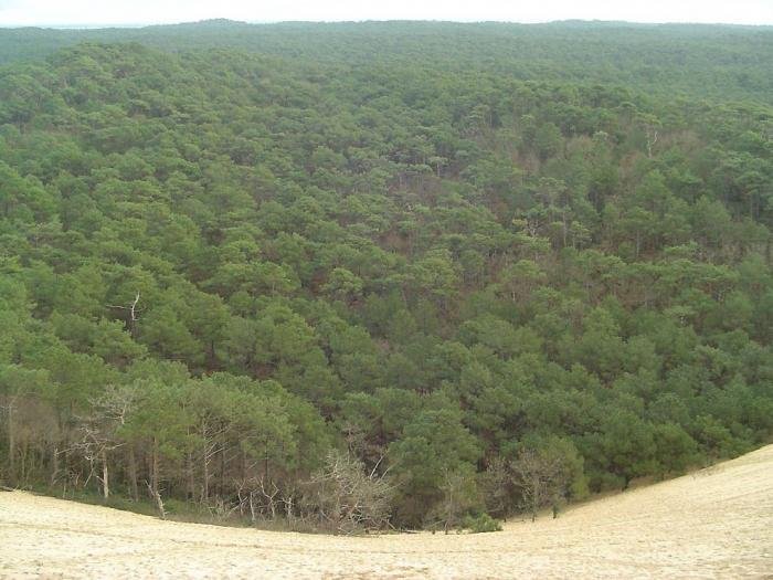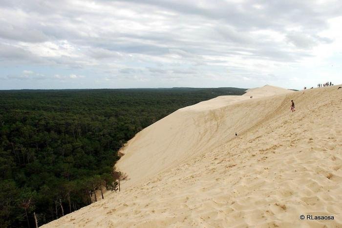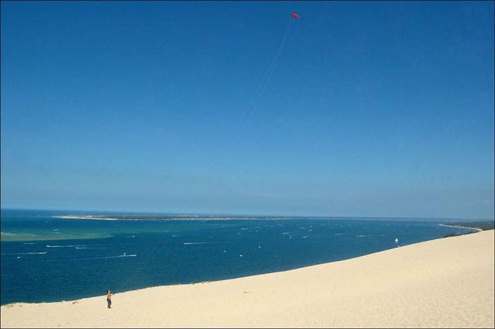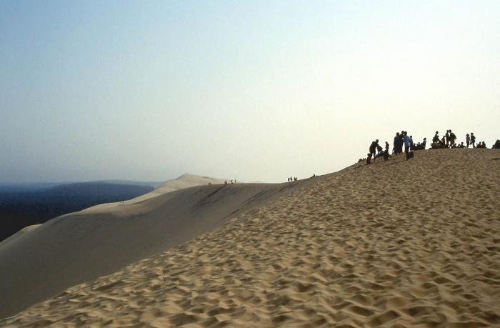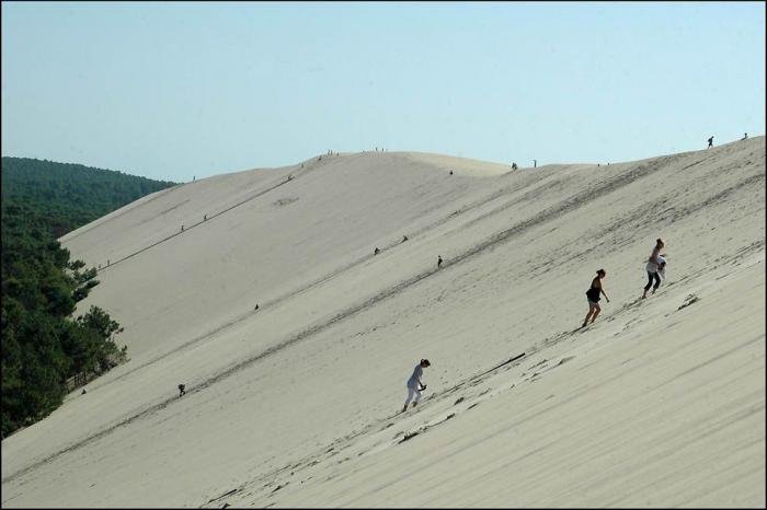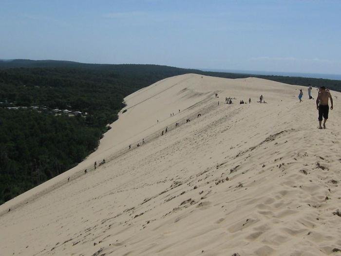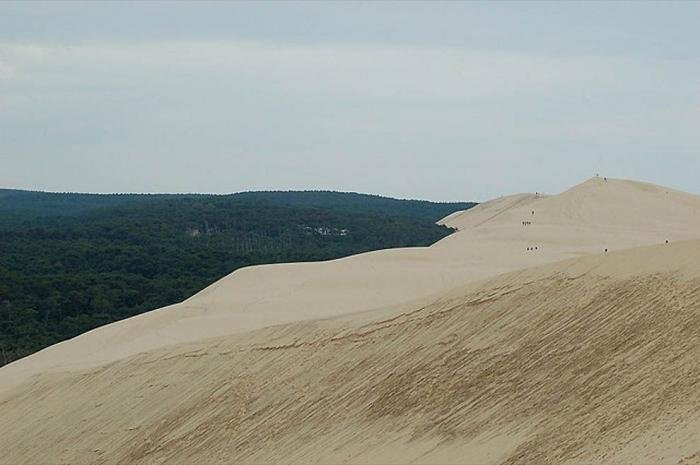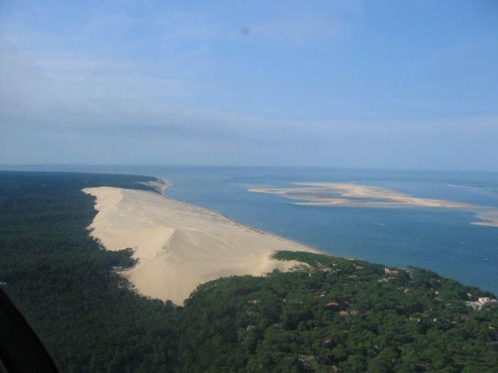 Дюна в Пиле – высочайшая песчаная дюна на территории Европы. Она расположена во Франции, в бухте Аркашон, в 60 км от Бордо. Объём дюны 60 000 000 м3, ширина — 500 м с востока на запад, а длина – 3 км с севера на юг. Высота ее достигает 107 метров над уровнем моря. Дюна неумолимо движется вглубь страны и постепенно засыпает здания и дороги.