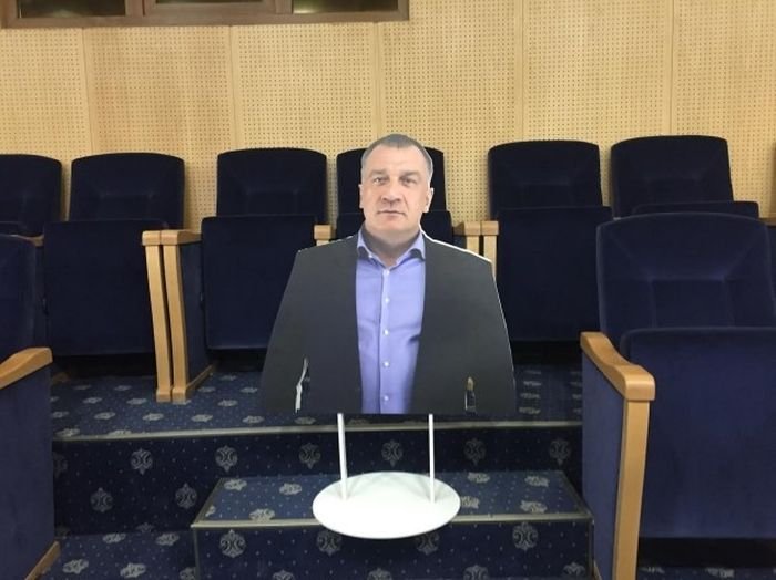 22 февраля на заседании Заксобрания Ленобласти вместо депутата Владимира Петрова присутствовала его картонная копия. Сам депутат не смог прийти на заседание из-за сломанной ноги, а его фигуру принес помощник. Фигура была установлена на месте Петрова в первом ряду и привлекла к себе огромное внимание, нашлись даже те, кто потребовал задержать помощника депутата. Как полагают СМИ, подобным образом депутат намеревался привлечь внимание коллег к тому, что многие из них не участвуют в жизни парламента, «молчат и нажимают кнопки, как им скажут».