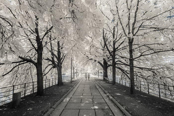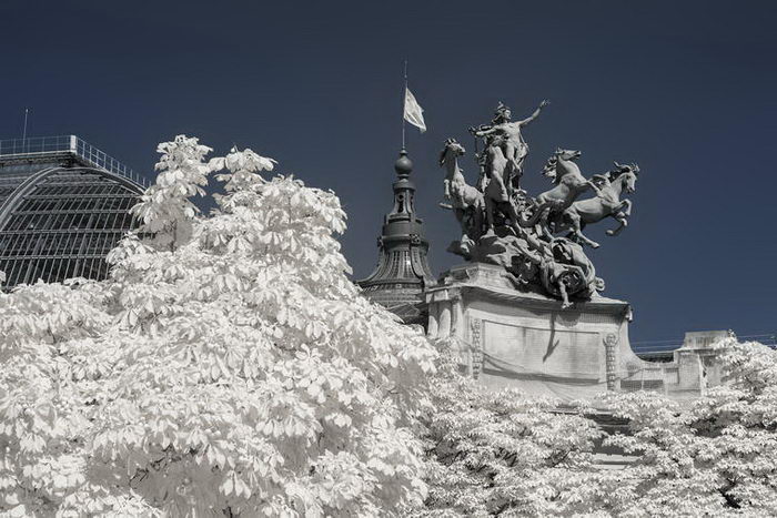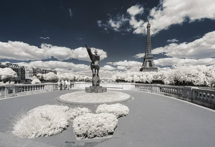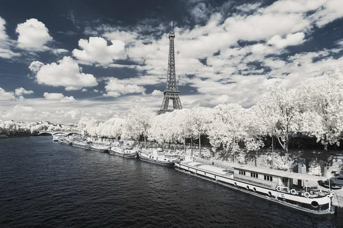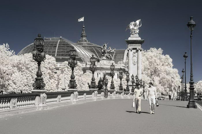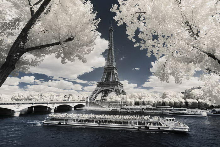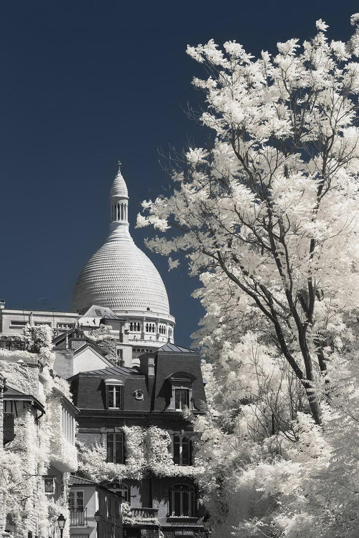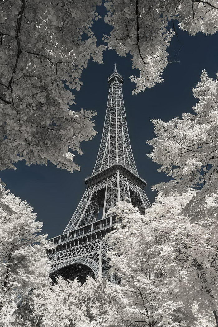 Фотограф Пьер-Луи Феррер (Pierre-Louis Ferrer) с помощью фотоаппарата Canon 6D, настроенного на съемку в инфракрасном диапазоне, сделал ряд классических снимков Парижа. На фотографиях город выглядит будто бы запорошенным снегом.