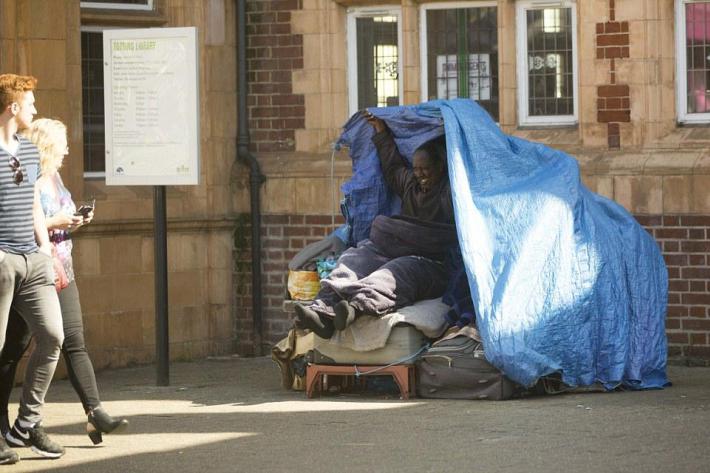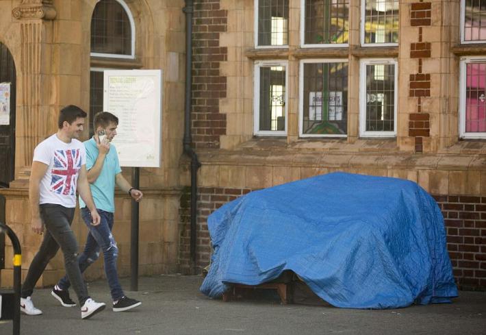 Мать и сына из Сомали выселили из квартиры в лондонском районе Тутинг в 2014 году за неуплату аренды. С тех пор они поселились на скамейке возле библиотеки в том же районе. Местные жители помогают им едой и деньгами, на ночь беженцы накрываются брезентом.